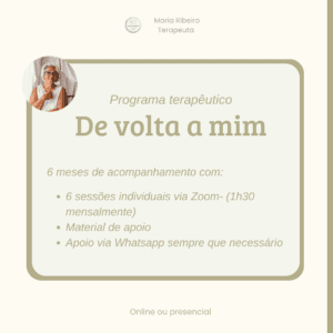 Bem-vind@ ao programa terapêutico “De volta a mim” e parabéns pela coragem de começar esta caminhada!